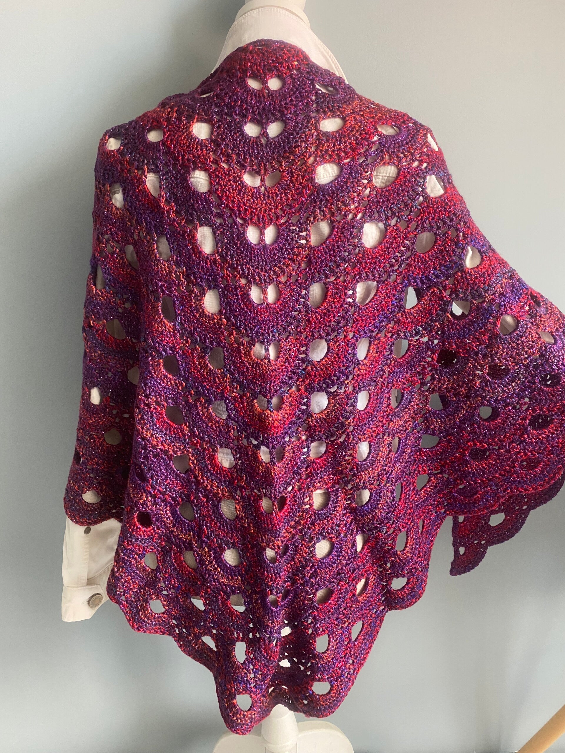 Shawl Arya is een driekante omslagdoek in een open waaierpatroon.